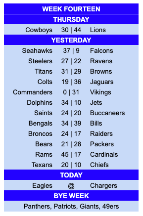 Arguably the best team in football (and there isn’t much of an argument at the moment) the 🐏Rams walloped the 🔴Cardinals yesterday and are ‘back on top of their game’ writes Gary Klein of the LA Times. Cardinals head coach Jonathan Gannon said the manner of the 45-17 defeat was “very humbling”.